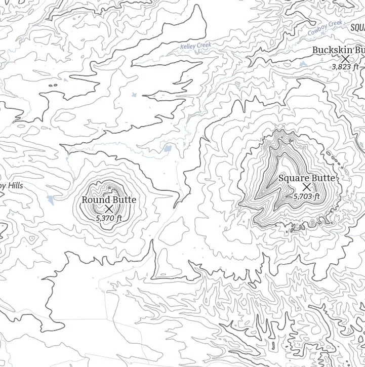 “Just The Basics” - Adding onto the minimalist style with NPS and USFS shading as well as mountain summits. A basic map.