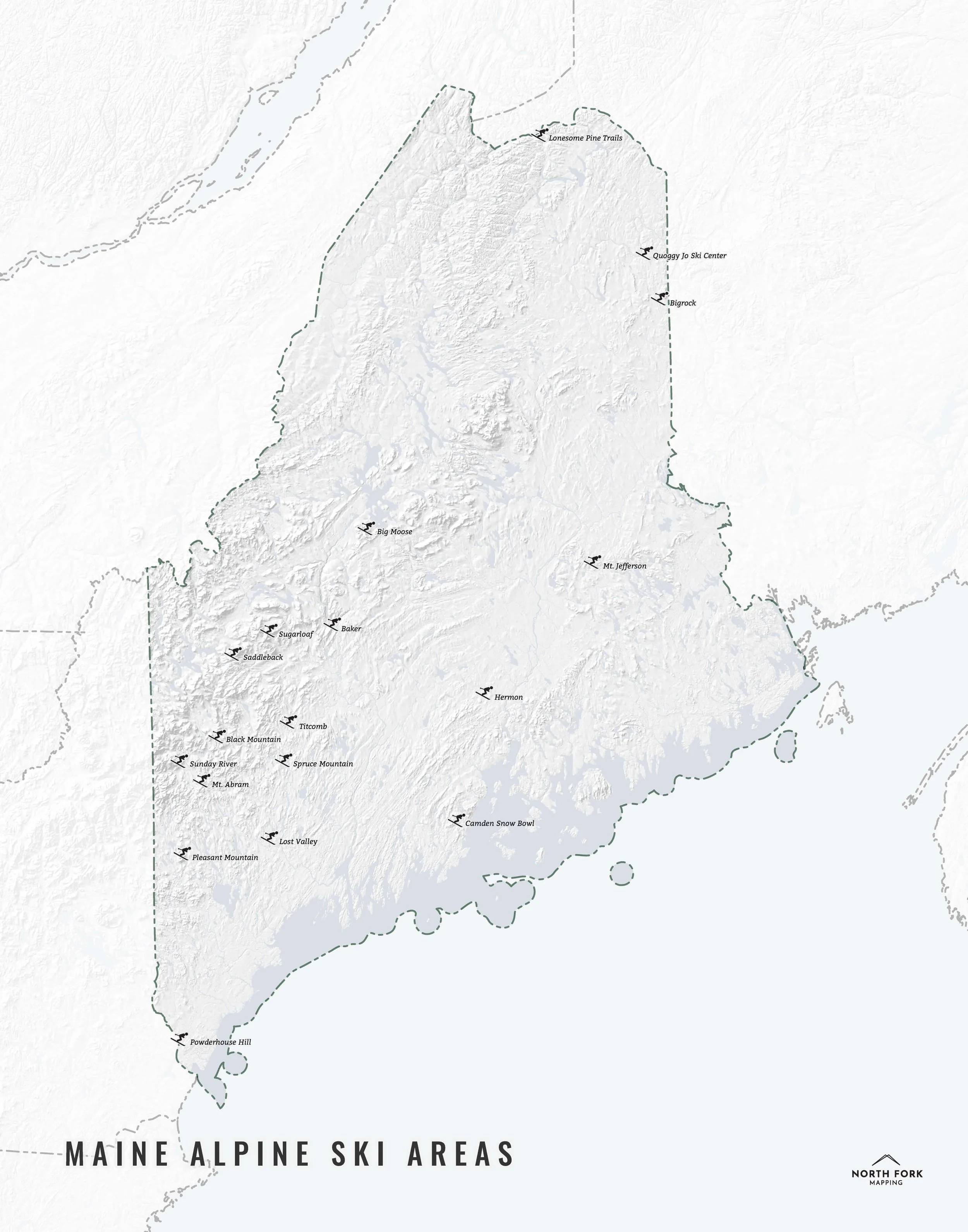 “Just The Basics” - Title and hillshade as well as labeled ski areas.